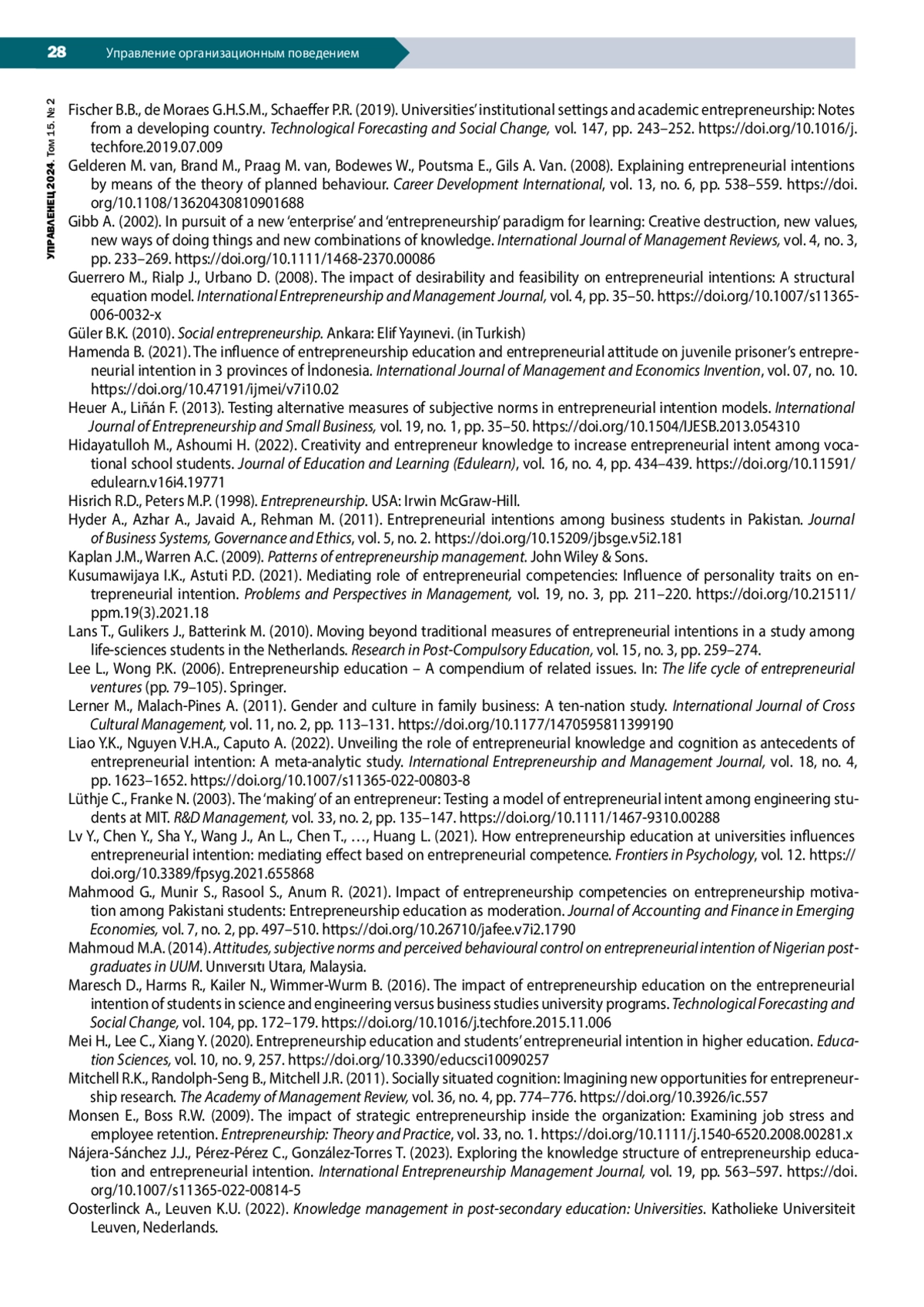 49. Nájera-Sánchez J.J., Pérez-Pérez C., González-Torres T. (2023). Exploring the knowledge structure of entrepreneurship education and entrepreneurial intention. International Entrepreneurship Management Journal, vol. 19, pp. 563-597. DOI: 10.1007/s11365-022-00814-5 EDN: BCHQST
