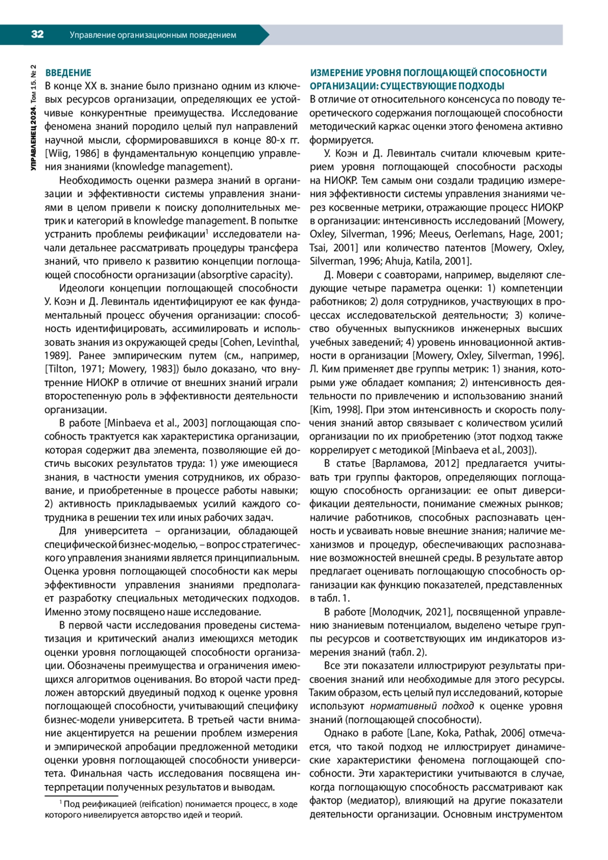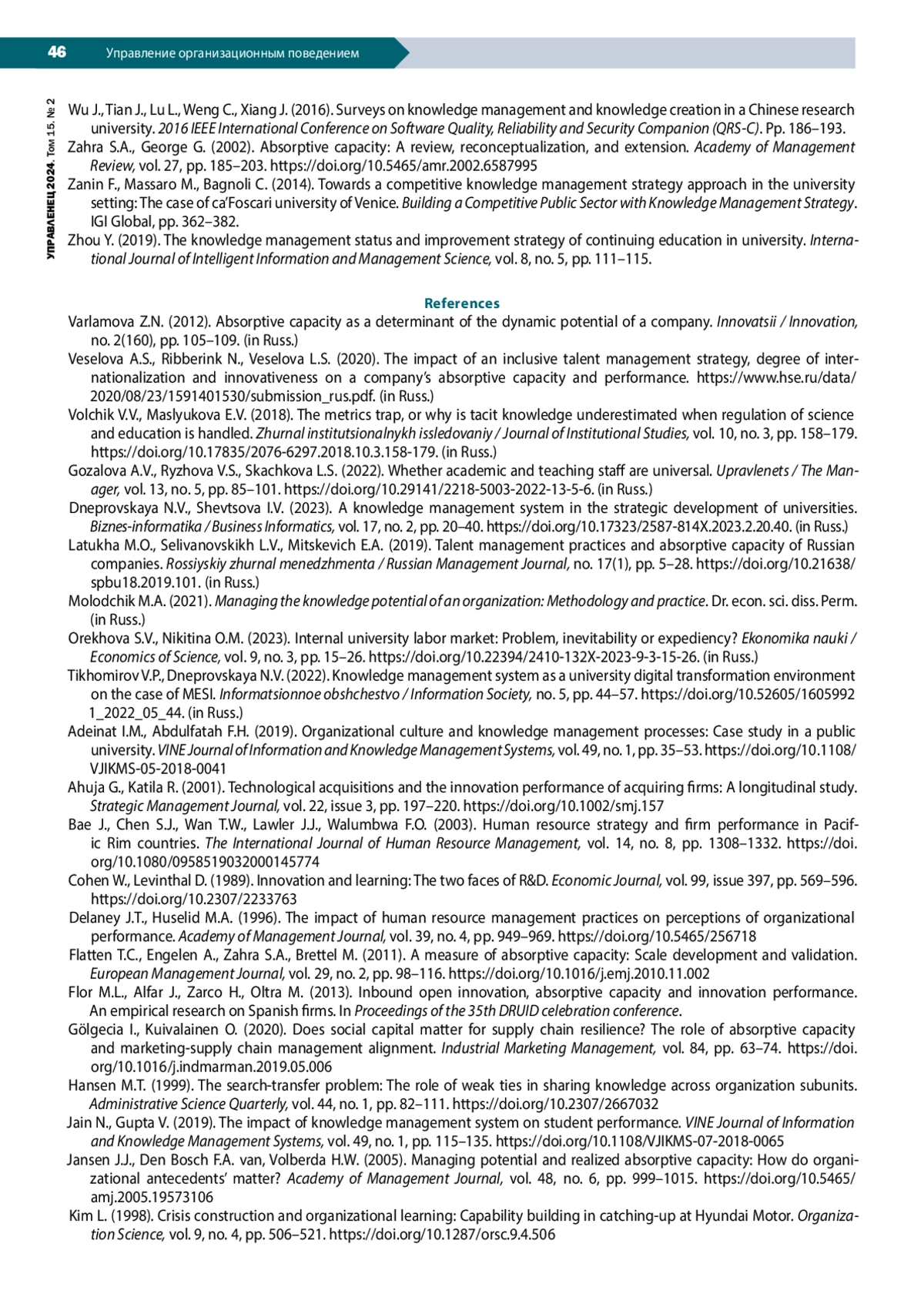 42. Zahra S.A., George G. (2002). Absorptive capacity: A review, reconceptualization, and extension. Academy of Management Review, vol. 27, рр. 185-203. DOI: 10.5465/amr.2002.6587995
