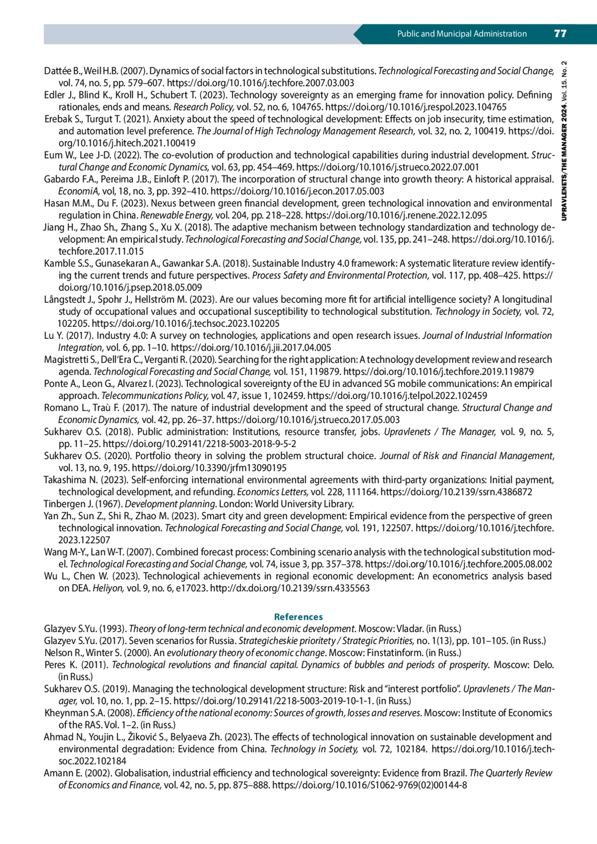 5. Сухарев О.С. (2019). Управление структурой технологического развития: риск и “процентный портфель” // Управленец. Т. 10, № 1. С. 2-15. DOI: 10.29141/2218-5003-2019-10-1-1 EDN: VVOHHN