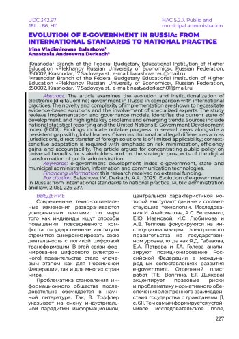 Статья: РАЗВИТИЕ ЭЛЕКТРОННОГО ПРАВИТЕЛЬСТВА В РОССИИ: ОТ МЕЖДУНАРОДНЫХ СТАНДАРТОВ К НАЦИОНАЛЬНОЙ ПРАКТИКЕ (2025)