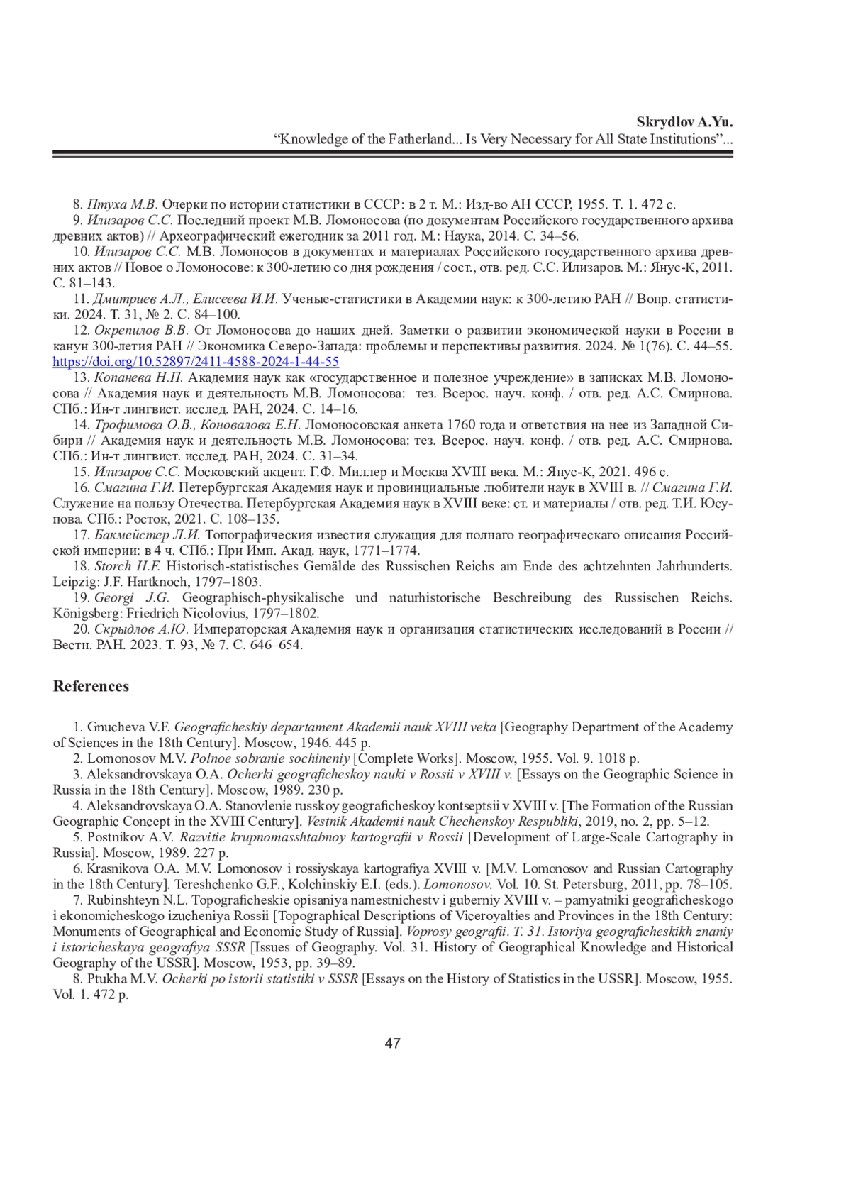 20. Скрыдлов А.Ю. Императорская Академия наук и организация статистических исследований в России // Вестн. РАН. 2023. Т. 93, № 7. С. 646-654.
