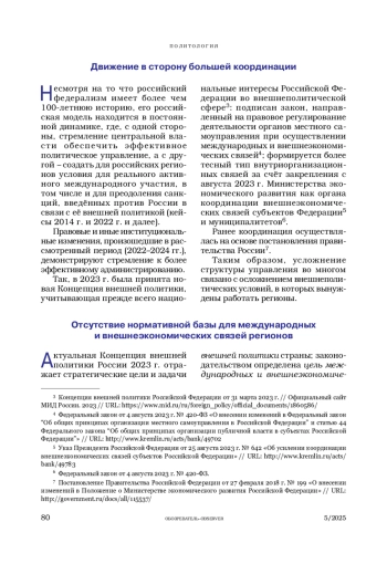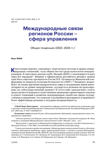 Статья: Международные связи регионов России – сфера управления. Общие тенденции (2022–2024 гг.) (2025)