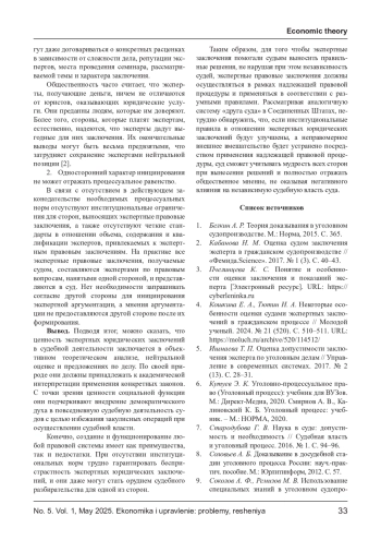 Статья: ОЦЕНКА ЮРИДИЧЕСКОЙ ЦЕННОСТИ ЭКСПЕРТНЫХ ЗАКЛЮЧЕНИЙ И ИХ ПРИМЕНЕНИЕ В СУДЕБНОЙ ДЕЯТЕЛЬНОСТИ СОВРЕМЕННОЙ ЭКОНОМИЧЕСКОЙ СИСТЕМЫ (2025)