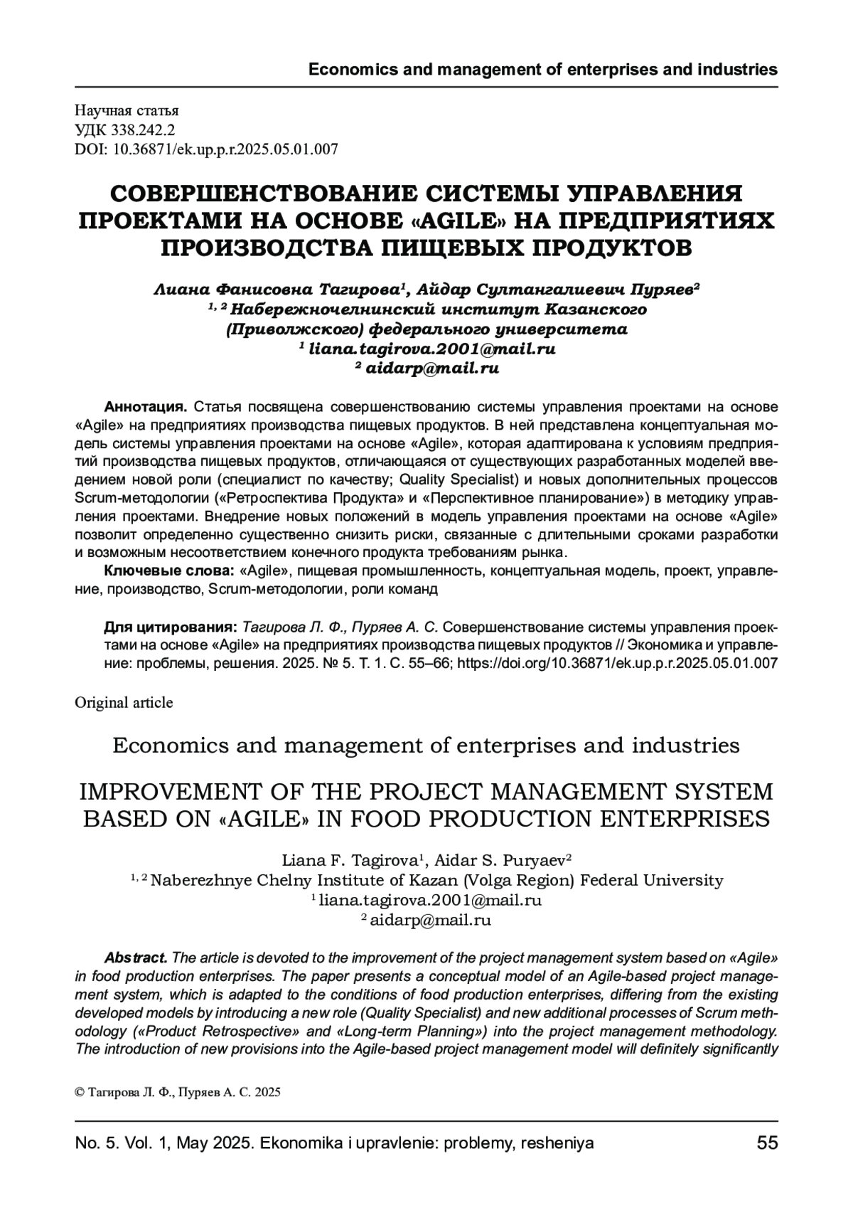 4. Буханов В. О., Газарян Г. С. Применение Agile - разработки программного обеспечения к процессам управления на пищевых производствах // Экономика: вчера, сегодня, завтра. 2023. Том 13. № 3А. С. 594-602. EDN: WNFLPK