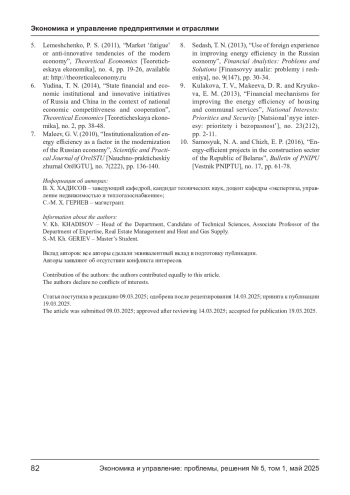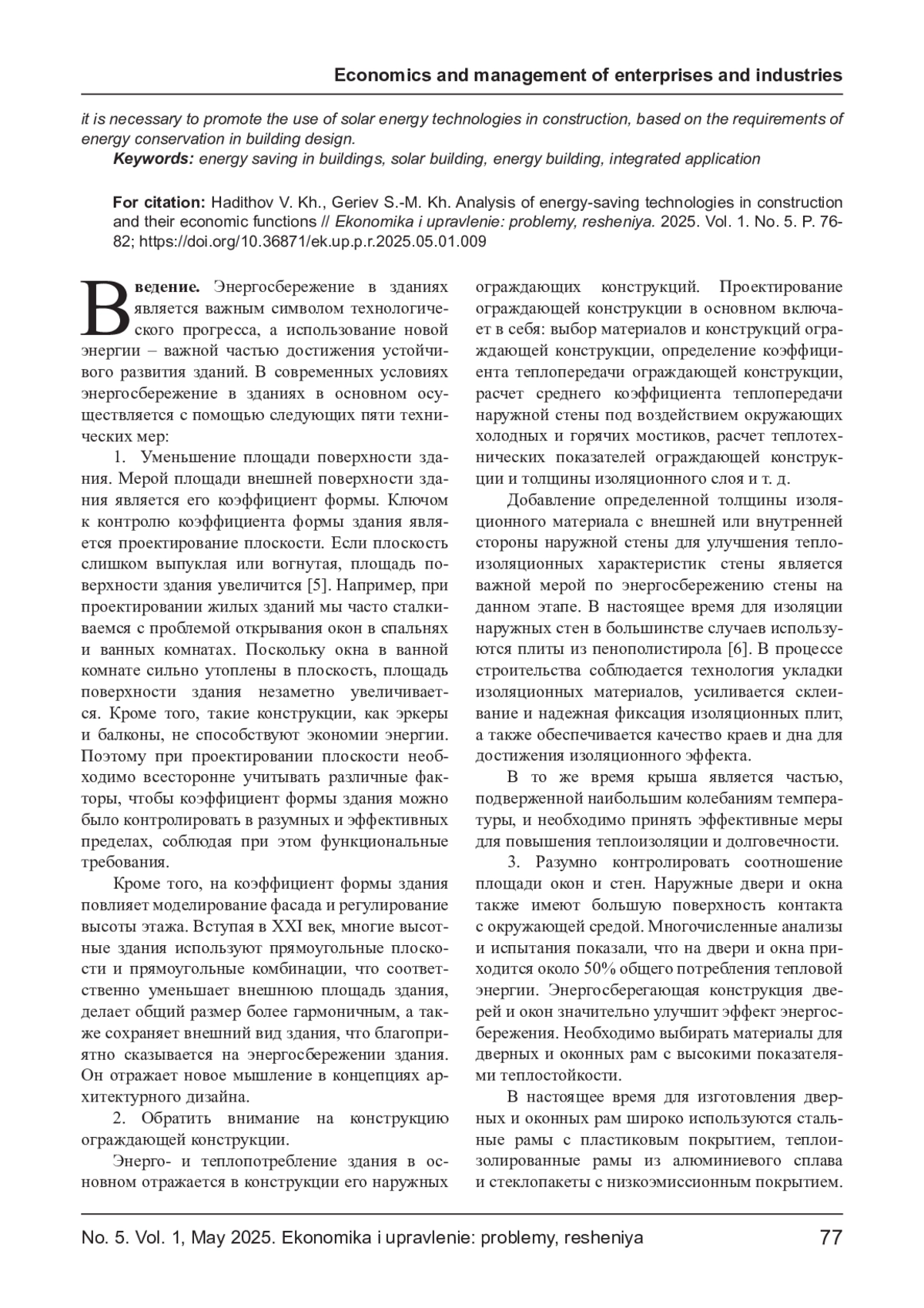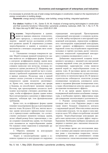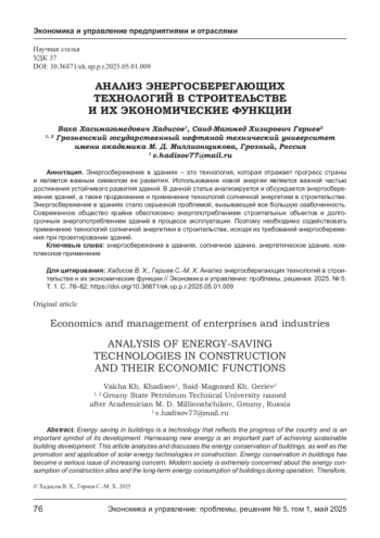 ХАДИСОВ В. Х., ГЕРИЕВ С. Х. АНАЛИЗ ЭНЕРГОСБЕРЕГАЮЩИХ ТЕХНОЛОГИЙ В СТРОИТЕЛЬСТВЕ И ИХ ЭКОНОМИЧЕСКИЕ ФУНКЦИИ // ЭКОНОМИКА И УПРАВЛЕНИЕ: ПРОБЛЕМЫ, РЕШЕНИЯ. 2025. ТОМ 1 № 5