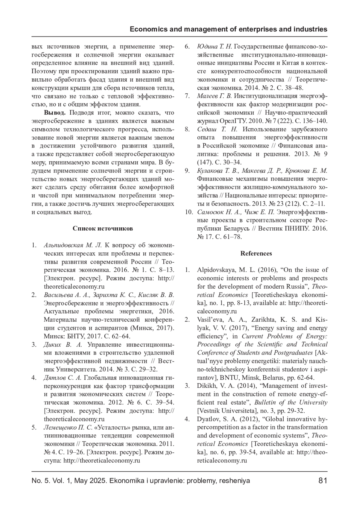 Журнал: ЭКОНОМИКА И УПРАВЛЕНИЕ: ПРОБЛЕМЫ, РЕШЕНИЯ