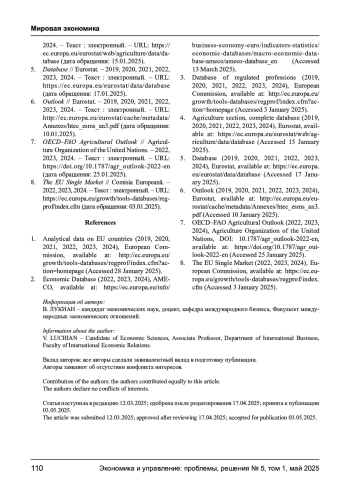 4. Agriculture section, complete database // Eurostat. - 2019, 2020, 2021, 2022, 2023, 2024. - Текст: электронный. - URL: https://ec.europa.eu/eurostat/web/agriculture/data/database (дата обращения: 15.01.2025).