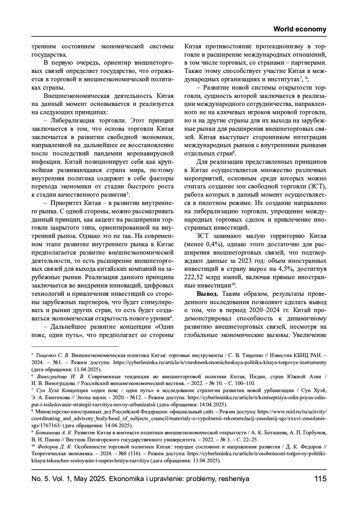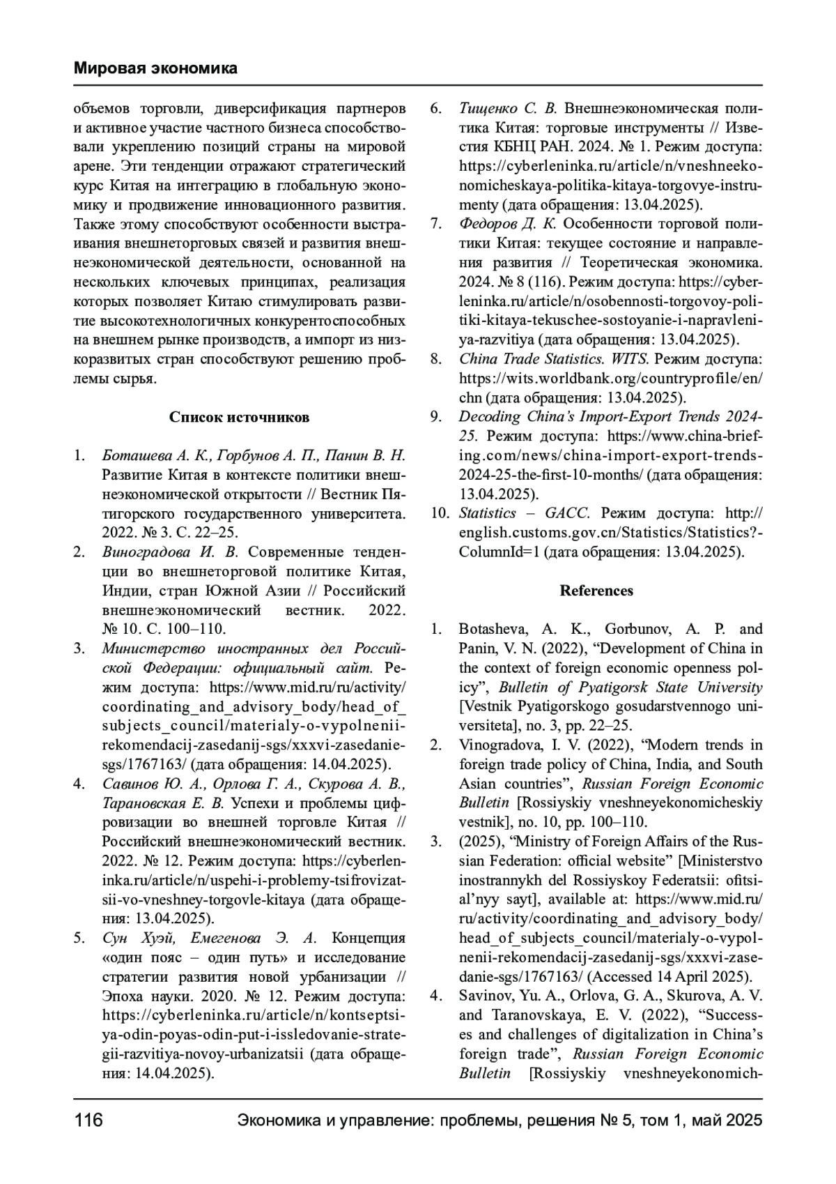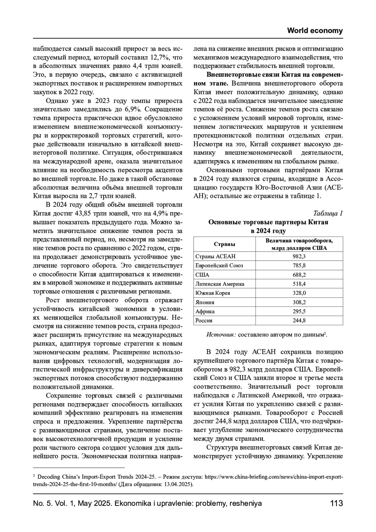 УРМАНОВ Б. Н. ОСОБЕННОСТИ ВНЕШНЕТОРГОВЫХ СВЯЗЕЙ КИТАЯ В СОВРЕМЕННЫХ УСЛОВИЯХ // ЭКОНОМИКА И УПРАВЛЕНИЕ: ПРОБЛЕМЫ, РЕШЕНИЯ. 2025. ТОМ 1 № 5