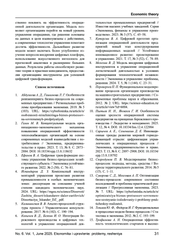3. Ефанов В. А. Цифровая трансформация системы управления бизнес-процессами хозяйствующего субъекта // Экономика устойчивого развития. 2022. № 2 (50). С. 76-81. EDN: IOQULQ