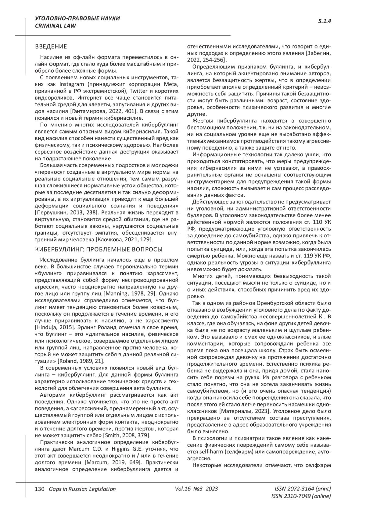 3. Забелин С.Е. Феномен кибербуллинга в современном мире / С.Е. Забелин // Содержательные и процессуальные аспекты современного образования: материалы IV Международной научно-практической конференции / Ред.-сост. И.А. Романовская, Е.А. Тарабановская. - Астрахань, 2022. - С. 254-256.