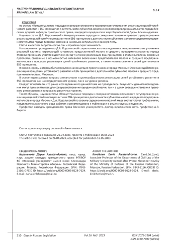 The right of sustainable development and ESG standards / Agafonov V.B., Alekseeva D.G., Alimova Ya.O. and others. M.: OOO “Prospekt”, 2022. 752 p.