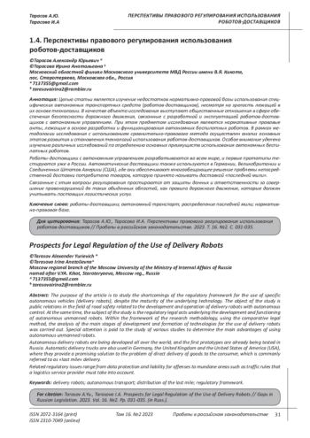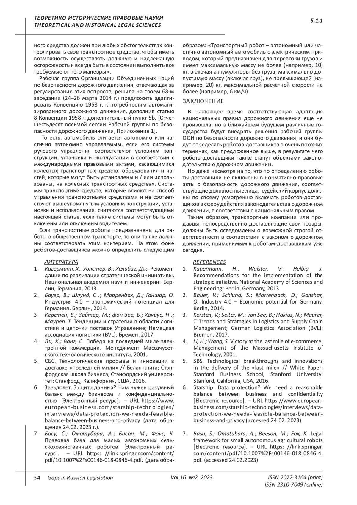7. Басу, С.; Омотубора, А.; Бисон, М.; Фокс, К. Правовая база для малых автономных сельскохозяйственных роботов [Электронный ресурс]. - URL https: //link.springer.com/content/pdf/10.1007%2Fs00146-018-0846-4.pdf. (дата обращения 24.02. 2023 г.).