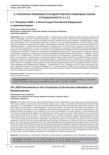 Khabrieva T.Ya., Klishas A.A. Thematic commentary to the Law of the Russian Federation on the amendment to the Constitution of the Russian Federation dated March 14, 2020 No. 1-FKZ on “On improving the regulation of certain issues of the organization and functioning of public authorities”. Norm. M., 2020. - 240 p.