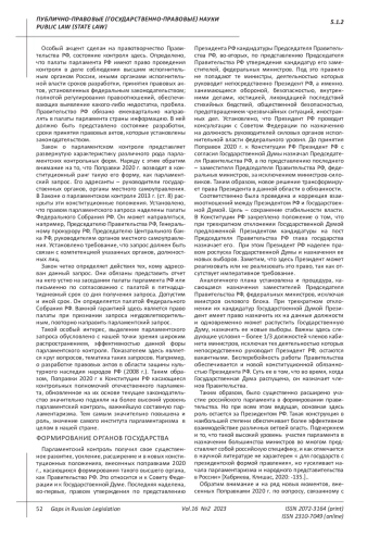 Существенные новшества связаны и с парламентаризмом, такого с одной стороны самостоятельного института, а с другой, важнейшей составной ряда иных фундаментальных институтов, показателей прогрессивного общества, как например, правовое государство, конституционализм. Прежде чем перейти к анализу данных новшеств, обратимся кратко к ряду отправных позиций. В первую очередь о самом понятии, определении «парламентаризм». Особо подчеркнем, что в этом плане российская наука всегда превосходила и превосходит все остальные, зарубежные. Представлено большое число отечественных определений данного феномена в различные годы на основе самых различных критериев. В дореволюционной России здесь был самым плодотворным период конституционной монархии. Свои позиции высказали практически все известные отечественные ученые- юристы того времени. Например, Н. И. Лазаревский, С. А. Корф, Н. К. Соколов [Лазаревский, 1913: 667; Корф, 1915: 299; Соколов, 1912: 7]. В центре здесь было взаимоотношение парламента и исполнительной власти, зависимость последней от доверия первой.