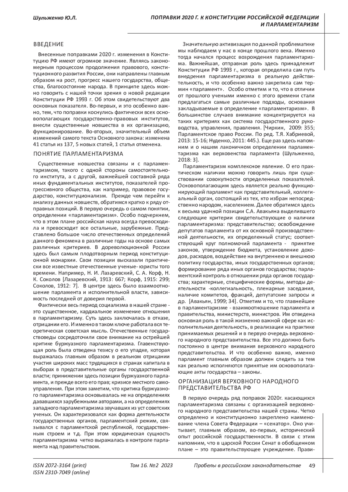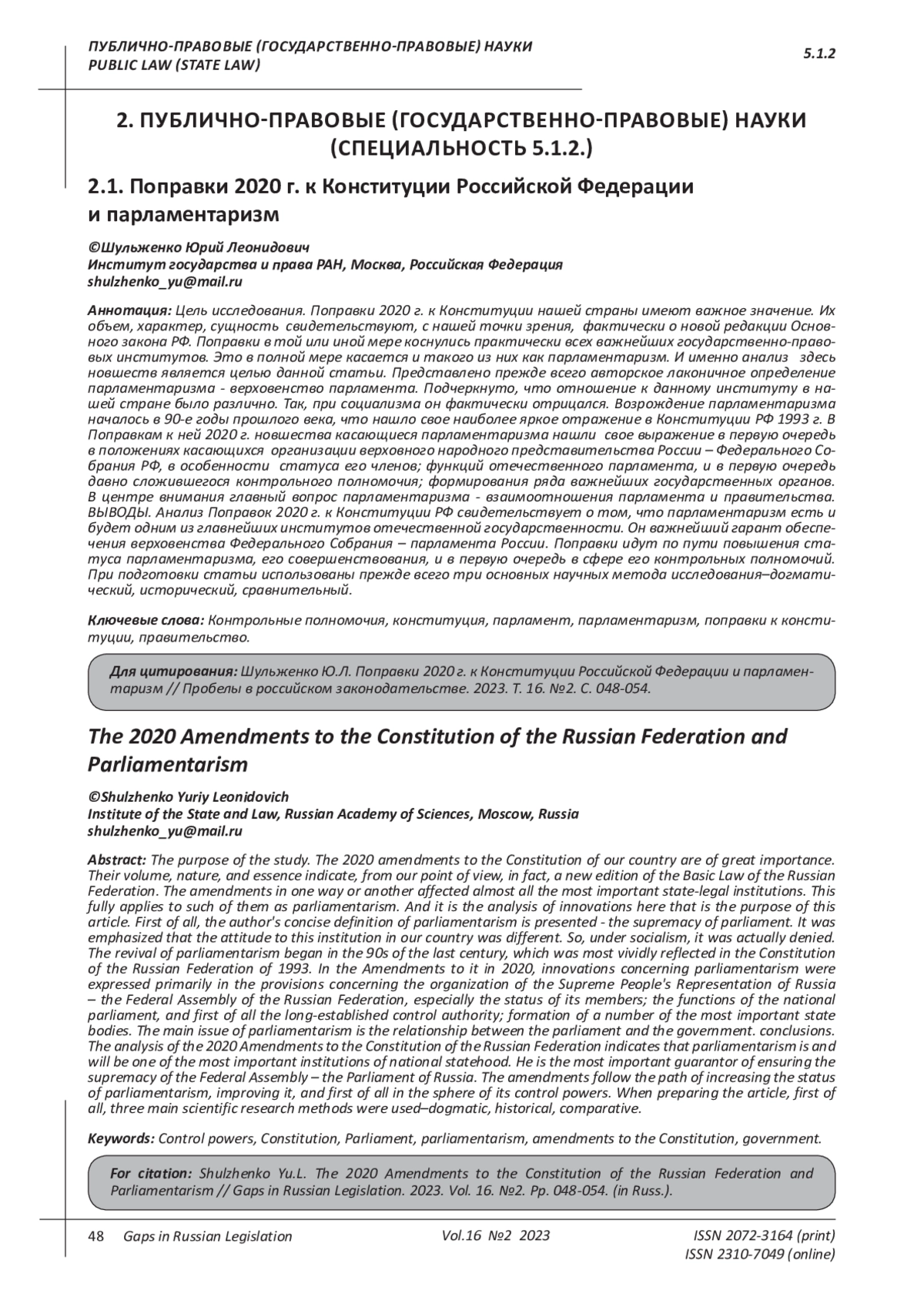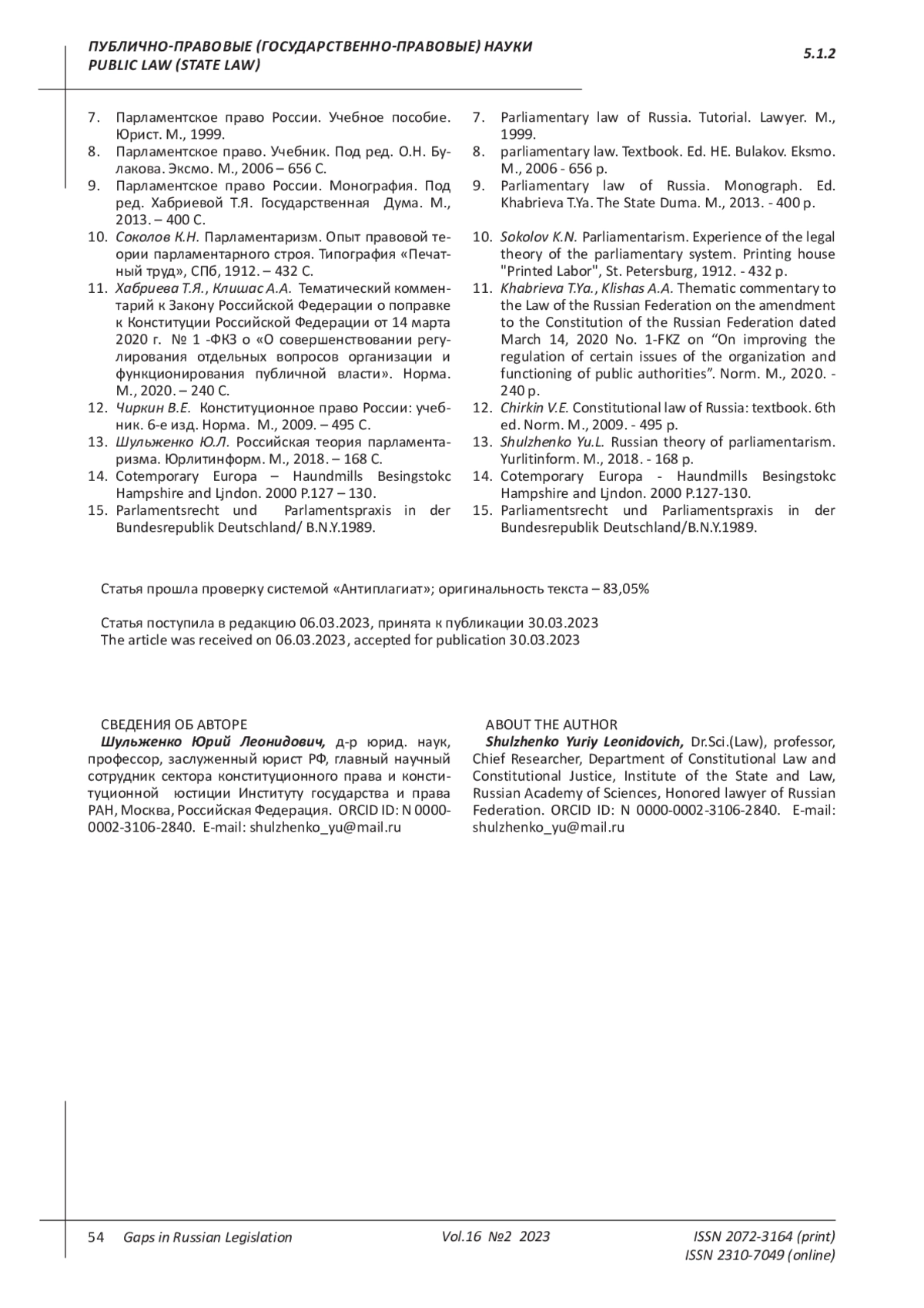 13. Шульженко Ю.Л. Российская теория парламентаризма. Юрлитинформ. М., 2018. - 168 С. EDN: ZHUGIN