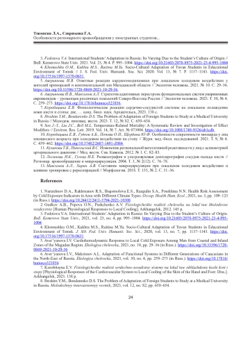7. Коробицына Е.В. Физиологические реакции сердечно-сосудистой системы на локальное охлаждение кожи кисти и стопы: дис.... канд. биол. наук. Архангельск, 2023. 138 с. EDN: DHIXUN