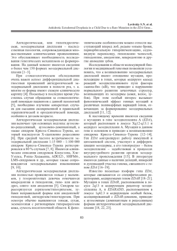 Ключевые фразы: ангидротическая эктодермальная дисплазия, адентия, аномалии развития зубов и челюстей, ген eda, однонуклеотидная замена