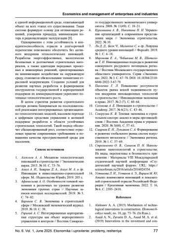 2. Асаул А. Н., Заварин Д. А., Асаул М. А. и др. Инновации в инвестиционно-строительной сфере. М.: Издательство Юрайт, 2019. 205 c. EDN: EHQNLP