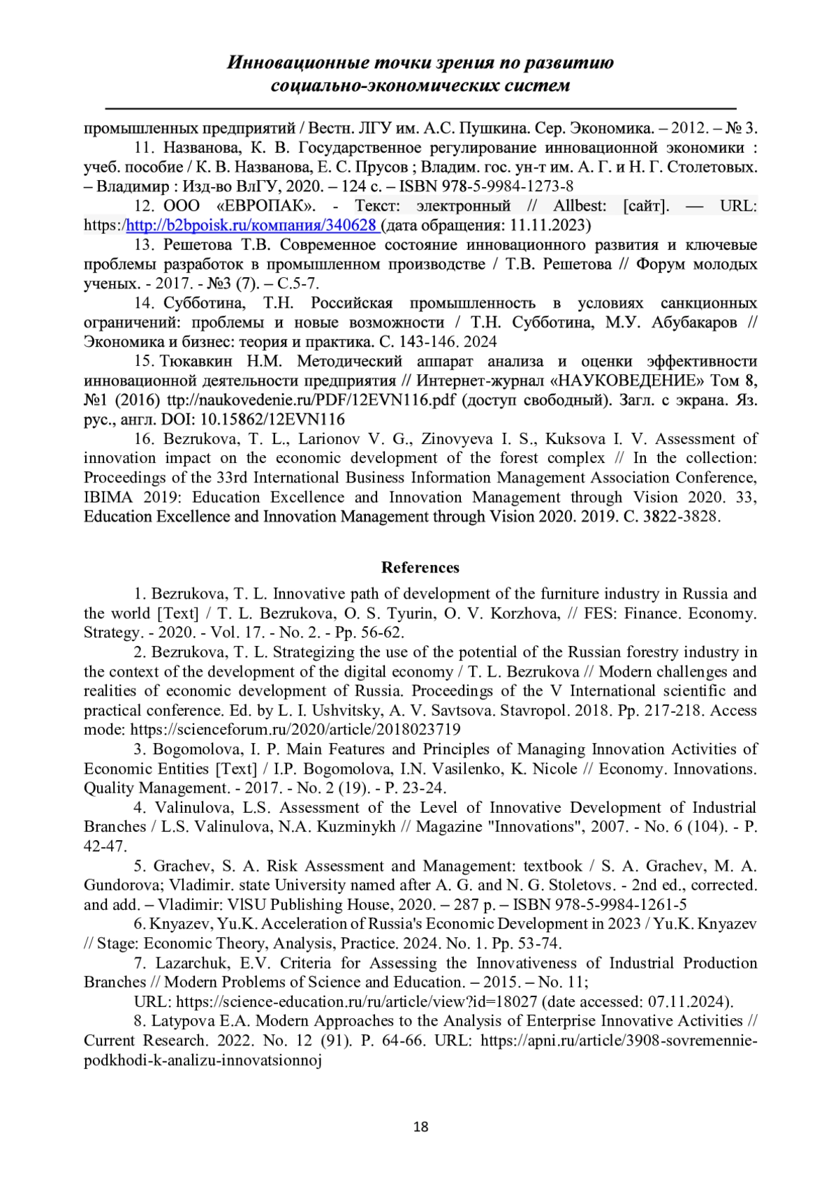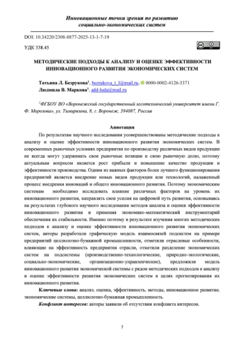 Статья: МЕТОДИЧЕСКИЕ ПОДХОДЫ К АНАЛИЗУ И ОЦЕНКЕ ЭФФЕКТИВНОСТИ ИННОВАЦИОННОГО РАЗВИТИЯ ЭКОНОМИЧЕСКИХ СИСТЕМ (2025)