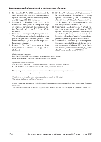 7. Музалев С. В., Жариков Е. С. Внедрение ERP-системы как важный этап развития предприятия // Хуманитарни Балкански изследвания. 2021. Т. 5, № 2 (12). С. 62-68. EDN: APLJFC