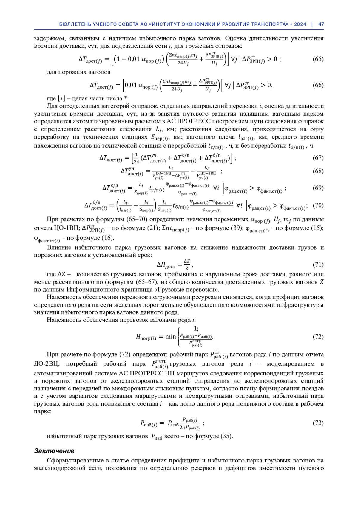 В статье сформулированы определения профицита и избыточного парка грузовых вагонов на железнодорожной сети, изложены методические положения по определению резервов и дефицитов вместимости путевого развития, вычисления избыточного парка грузовых вагонов в границах объектов железнодорожной инфраструктуры и подразделений железнодорожной сети, численной оценки его влияния на показатели эксплуатационной работы, на потери объемов перевозок грузов и снижение показателей надежности транспортного обслуживания.