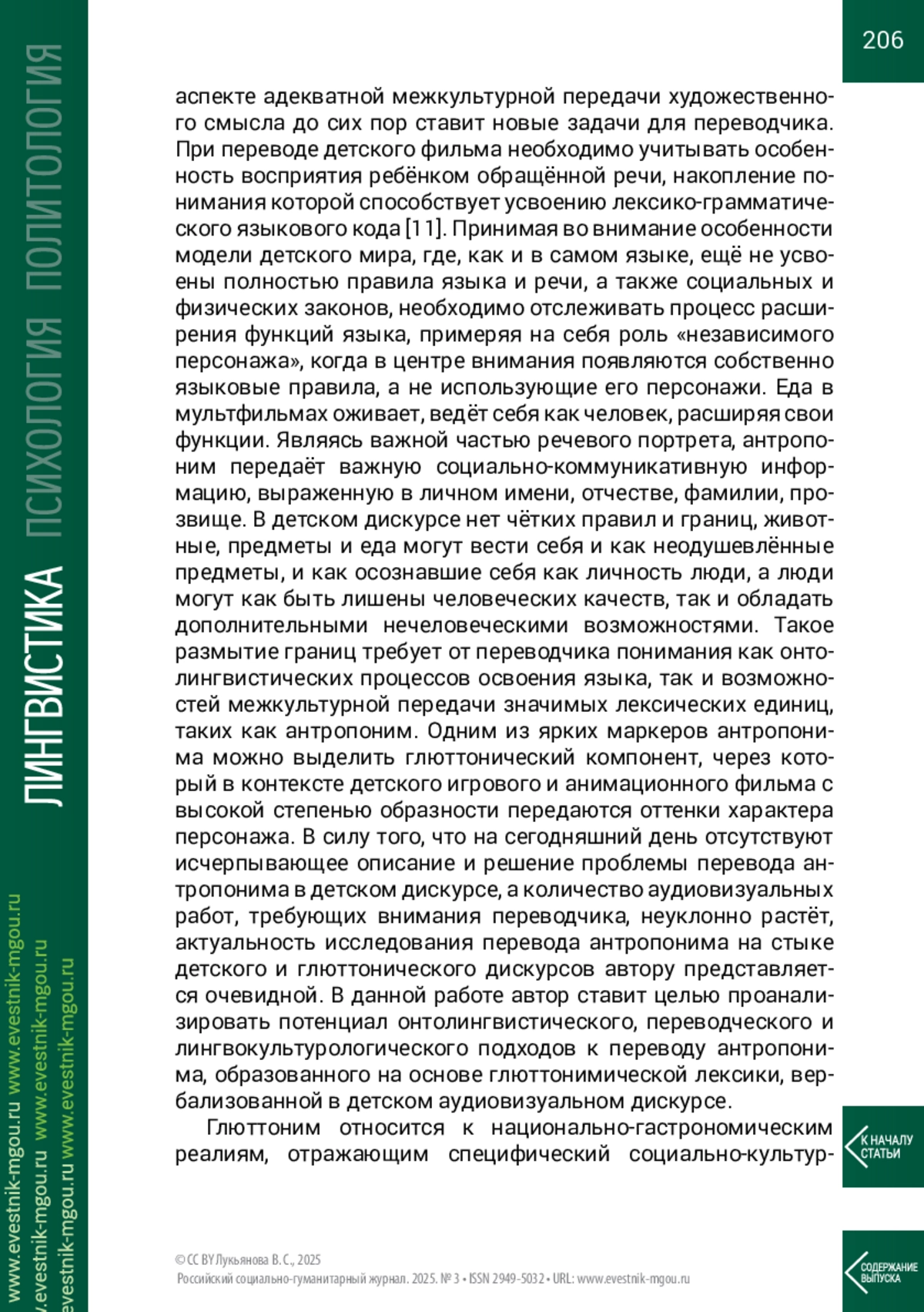5. Марданова М. А. Перевод онимов в кинотексте мультипликации (на материале перевода мультсериала ‘Paw Patrol’ на русский язык) // Russian Linguistic Bulletin. 2023. №9. С. 1-4. https://doi.org/10.18454/RULB.2023.45.22
