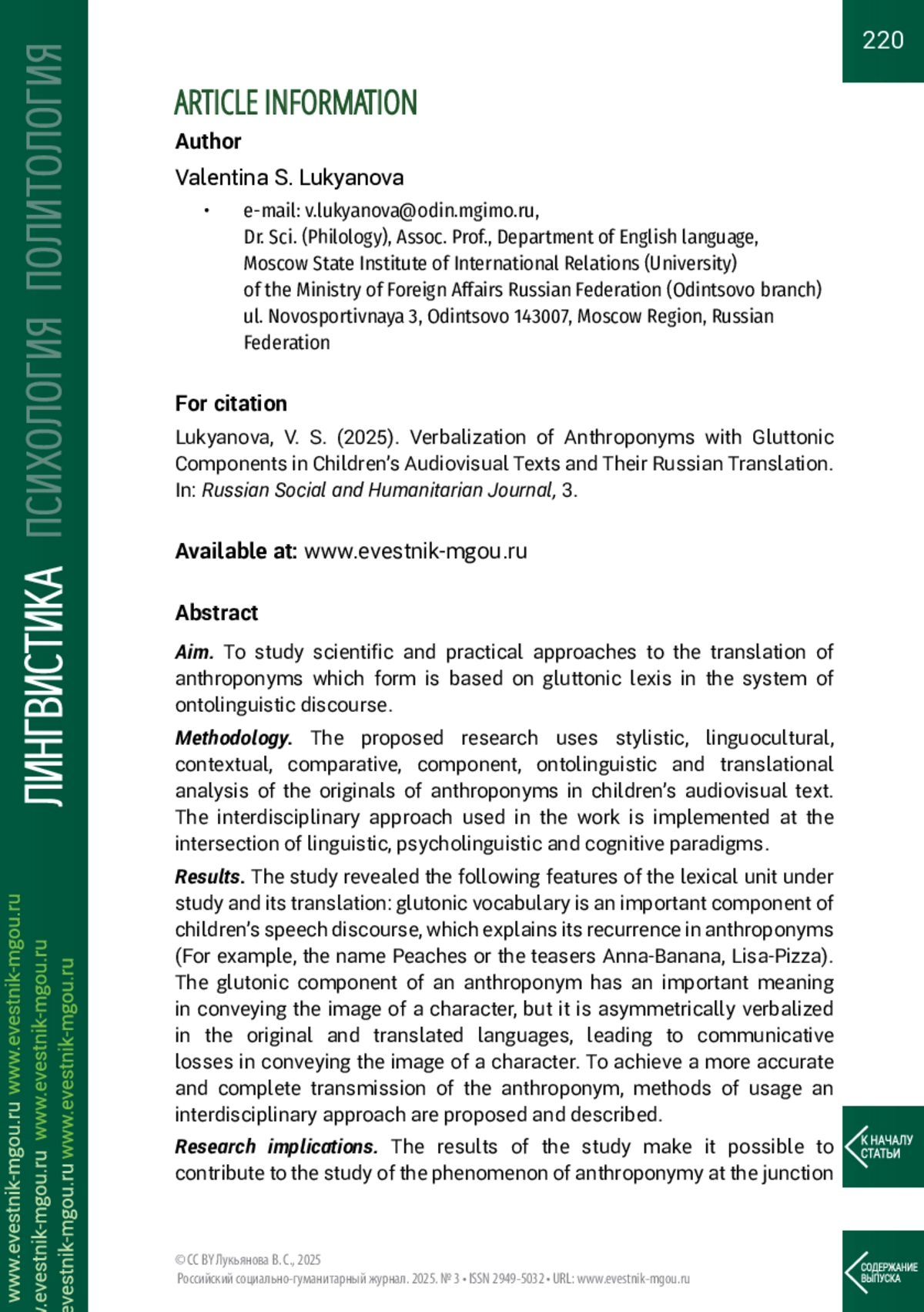 4. Лукин Д. С., Носова В. Д. Особенности передачи глюттонических прагматонимов на русский язык в европейском ономасическом пространстве // Современное педагогическое образование. 2022. №7. С. 148-153.