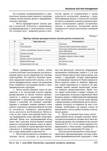 Статья: ОСНОВНЫЕ МЕТОДЫ АНАЛИЗА РИСКОВ В ПРЕДПРИНИМАТЕЛЬСКИХ СТРУКТУРАХ (2025)