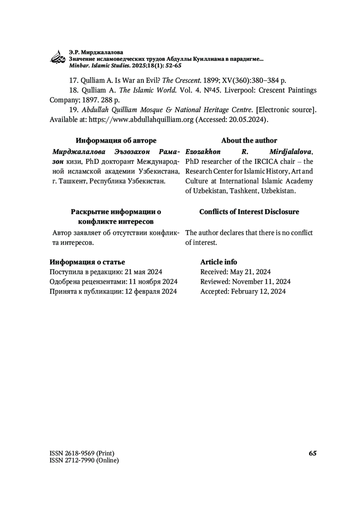 19. Abdullah Quilliam Mosque & National Heritage Centre. About Abdullah Quilliam [Электронный ресурс]. - Режим доступа: https://www.abdullahquilliam.org (дата обращения: 27.04.2024).