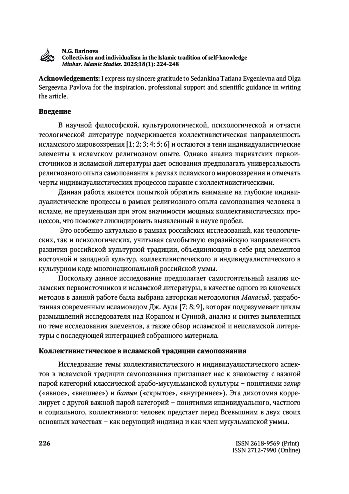 7. Баринова Н.Г. Методология «Макасид» современного мусульманского исследователя Джассера Ауды: основные положения. Роль современной Российской мусульманской молодежи в сохранении единства и укрепления патриотизма. Сборник материалов Республиканской студенческой научно-практической конференции. Казань: РИИ; 2023. С. 42-48.