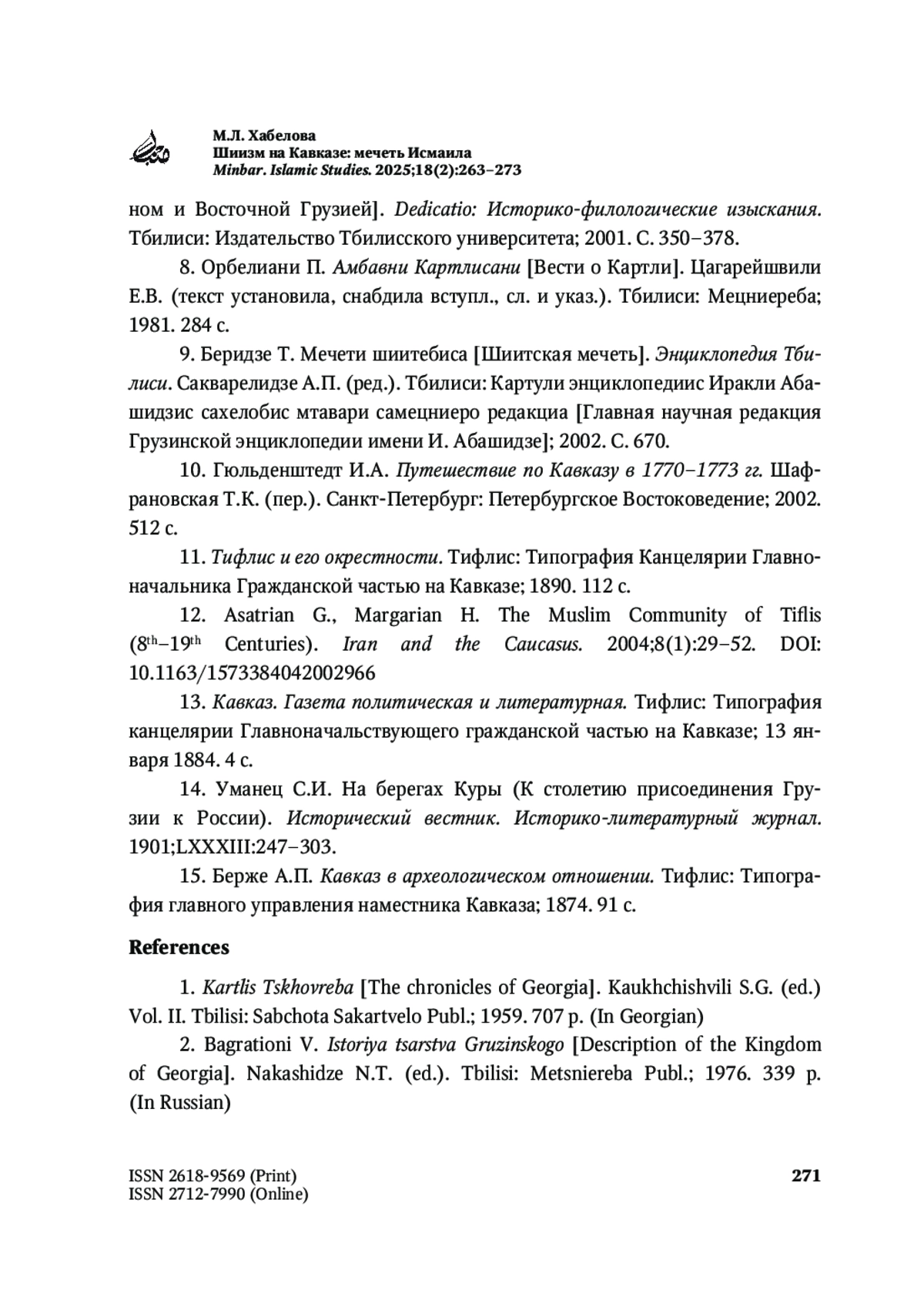 6. Иоселиани П.И. Описание древностей города Тифлиса. Тифлис: Типография главного управления наместника Кавказа; 1866. 314 с.