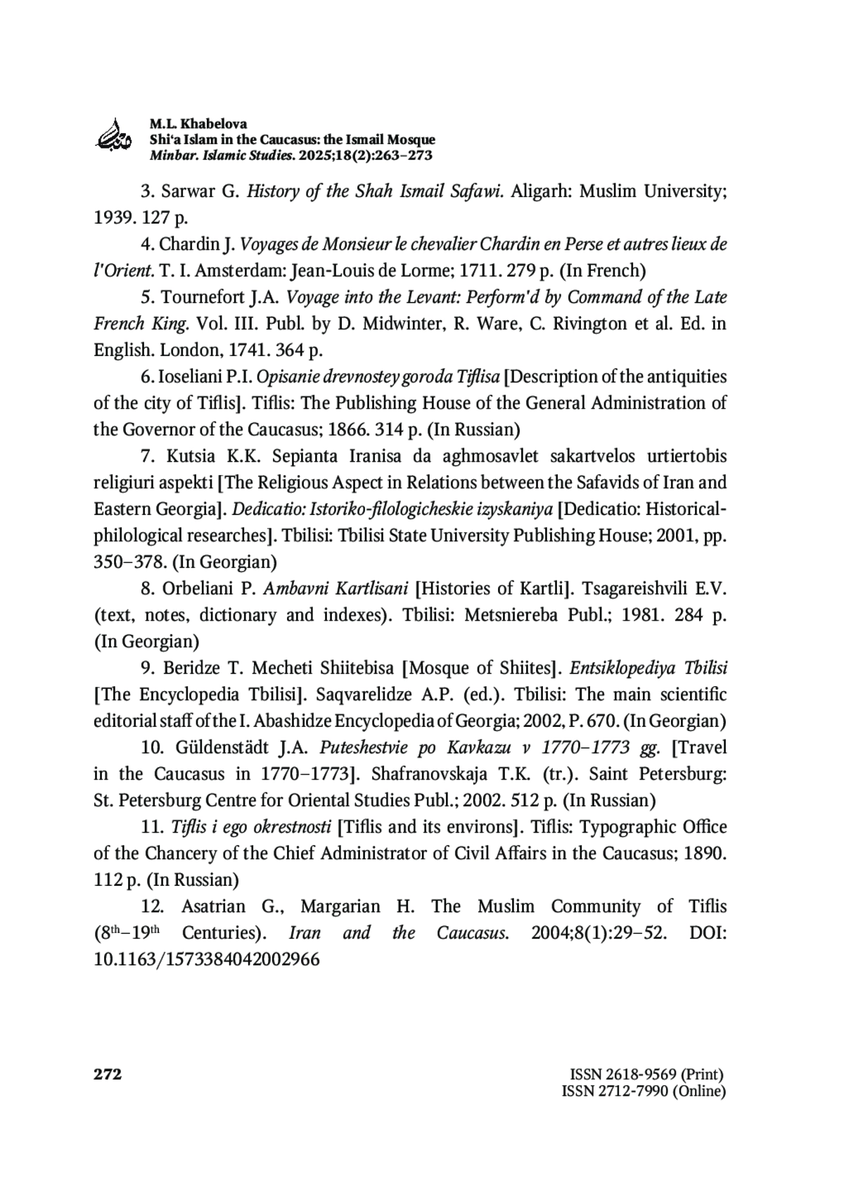 12. Asatrian G., Margarian H. The Muslim Community of Tifl is (8th-19th Centuries). Iran and the Caucasus. 2004;8(1):29-52. https://doi.org/10.1163/1573384042002966
