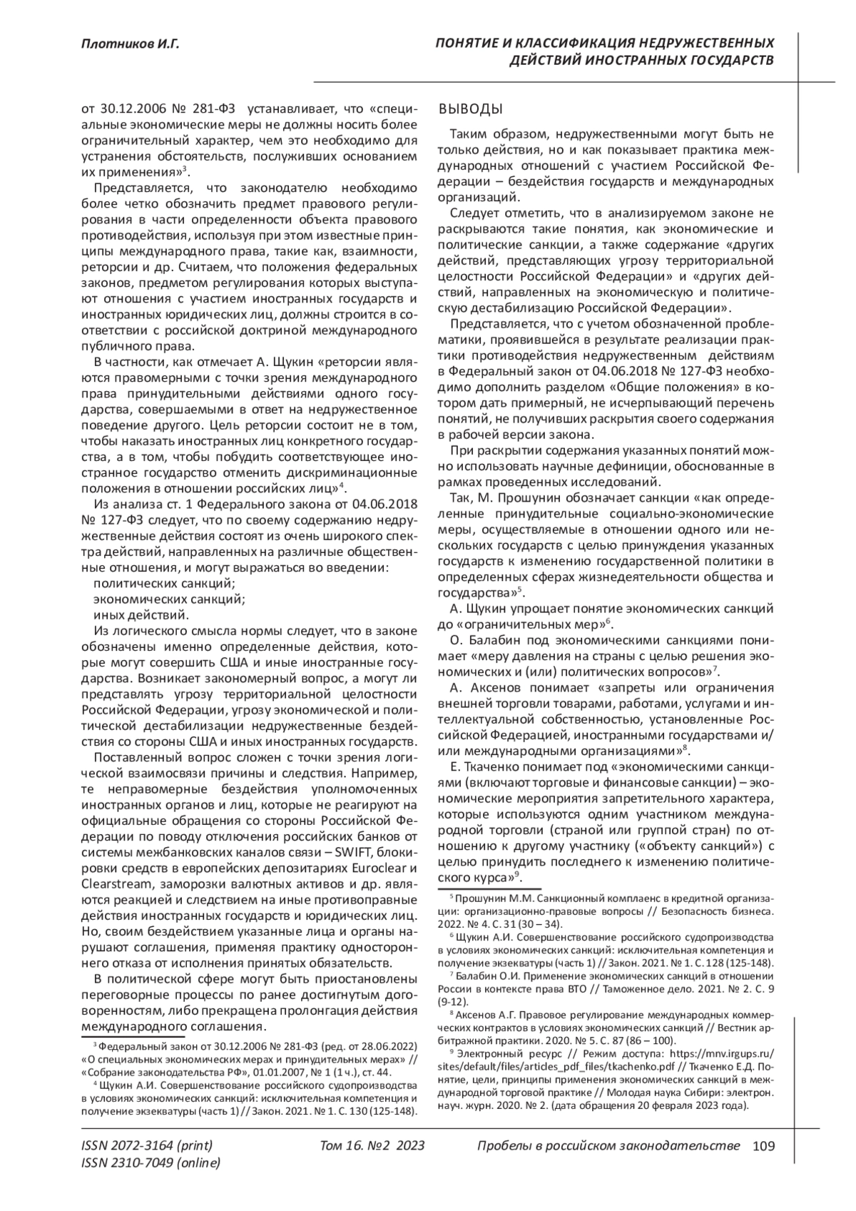 3. Щукин А.И. Совершенствование российского судопроизводства в условиях экономических санкций: исключительная компетенция и получение экзекватуры (часть 1) // Закон. 2021. № 1. С. 130 (125-148). EDN: LYHMKQ