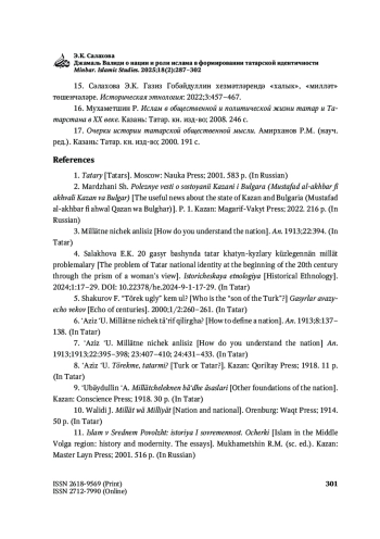15. Сәлахова Э.К. Газиз Гобәйдуллин хезмәтләрендә «халык», «милләт» төшенчәләре. Историческая этнология: 2022;3:457-467.