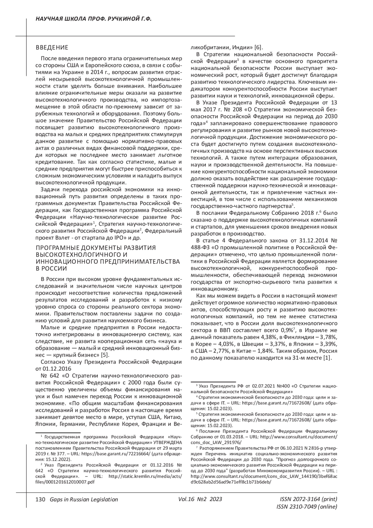 После введения первого этапа ограничительных мер со стороны США и Европейского союза, в связи с событиями на Украине в 2014 г., вопросам развития отраслей несырьевой высокотехнологичной промышленности стали уделять больше внимания. Наибольшее влияние ограничительные меры оказали на развитие высокотехнологичного производства, но импортозамещение в этой области по-прежнему зависит от зарубежных технологий и оборудования. Поэтому большое значение Правительство Российской Федерации посвящает развитию высокотехнологичного производства на малых и средних предприятиях стимулируя данное развитие с помощью нормативно-правовых актах о различных видах финансовой поддержки, среди которых не последнее место занимает льготное кредитование. Так как согласно статистике, малые и средние предприятия могут быстрее приспособиться к сложным экономическим условиям и наладить выпуск высокотехнологичной продукции.