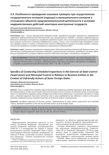 Цель - анализ нормативной правовой основы проведения плановых проверочных мероприятий субъектов предпринимательской деятельности при осуществлении ГКНиМК в условиях недружественных действий некоторых иностранных государств. Делается вывод, что в качестве регуляторных послаблений были внесены изменения в некоторые федеральные законы, в связи с чем в последние годы проводятся плановые проверки только в случаях, установленных законом. Обращается внимание на особый порядок, установленный при проведении плановых проверочных мероприятий субъектов МСП.