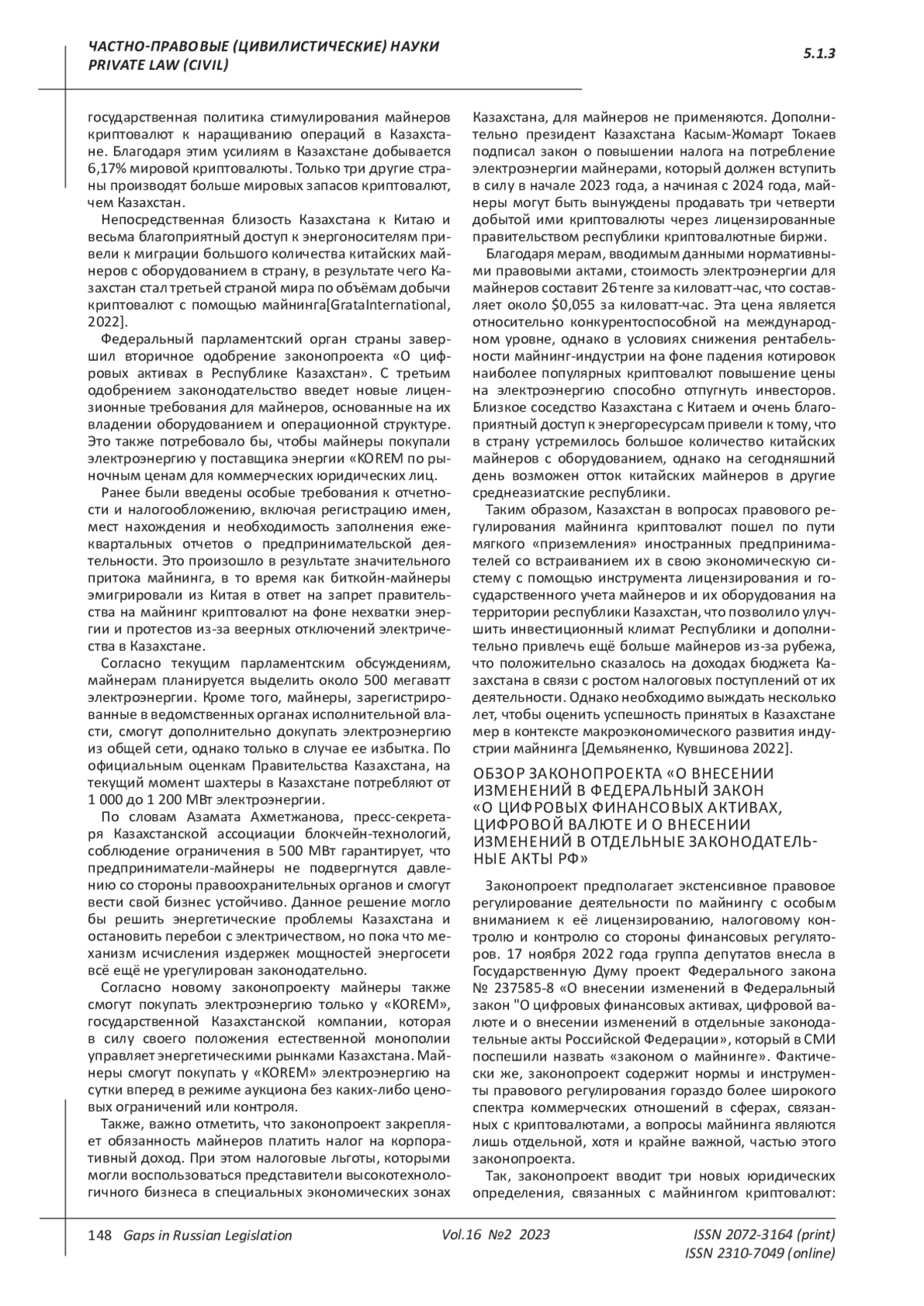 3. Grata International (2022) The legal regulation of cryptocurrency and digital mining in Kazakhstan, 2022, Kazakhstan.