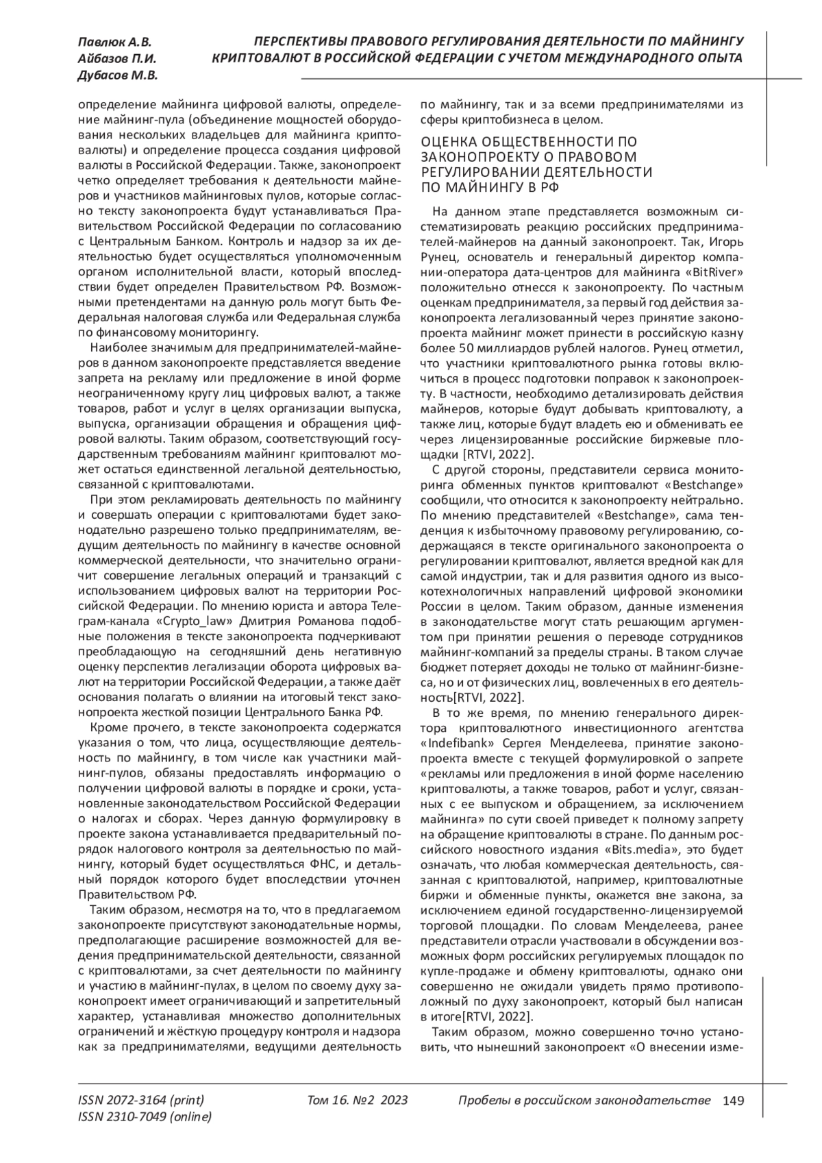 7. РБК (2022), Аксаков подтвердил планы властей по полному запрету оборота криптовалюты, 2022, Москва, Россия, в наличии в: https://www.rbc.ru/crypto/news/6377589b9a79479cf72f8483.