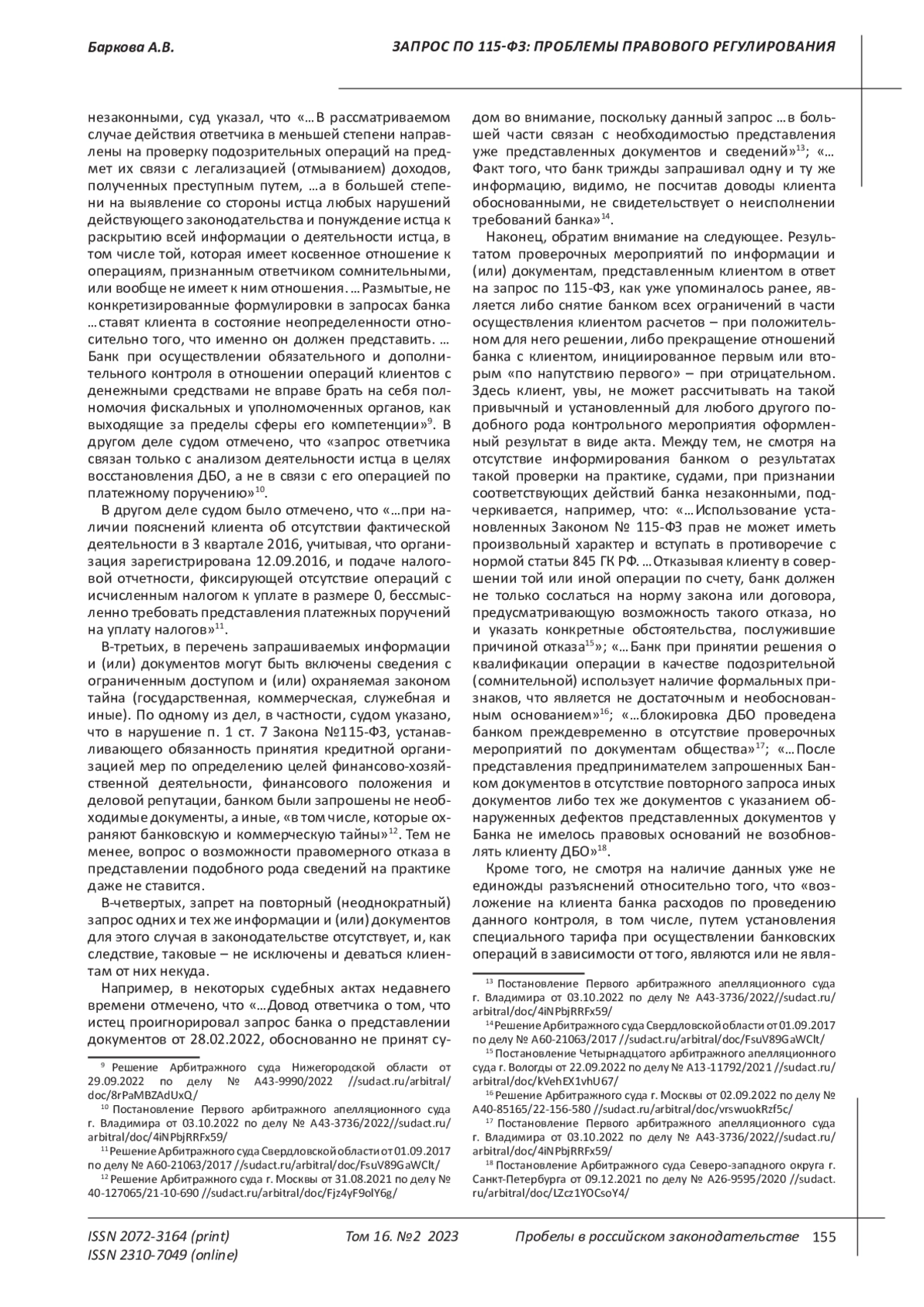 Лимитирование или приостановка операций по счету, отказ в расчетно-кассовом обслуживании (далее – РКО) и расторжение соответствующего договора, удержание заградительного тарифа, ограничение в последующем возможности заключения иных договоров о РКО – общеизвестные последствия неудовлетворительного с точки зрения банка ответа на его запрос, обусловленный противоправным в понимании Федерального закона от 07.08.2001 № 115-ФЗ «О противодействии легализации (отмыванию) доходов, полученных преступным путем, и финансированию терроризма» (далее – Закон № 115-ФЗ) характером осуществляемых клиентом операций (далее – запрос по 115-ФЗ, в части, не касающейся идентификации клиентов и раскрытия информации об их бенефициарных владельцах, обязательного контроля отдельных операций)