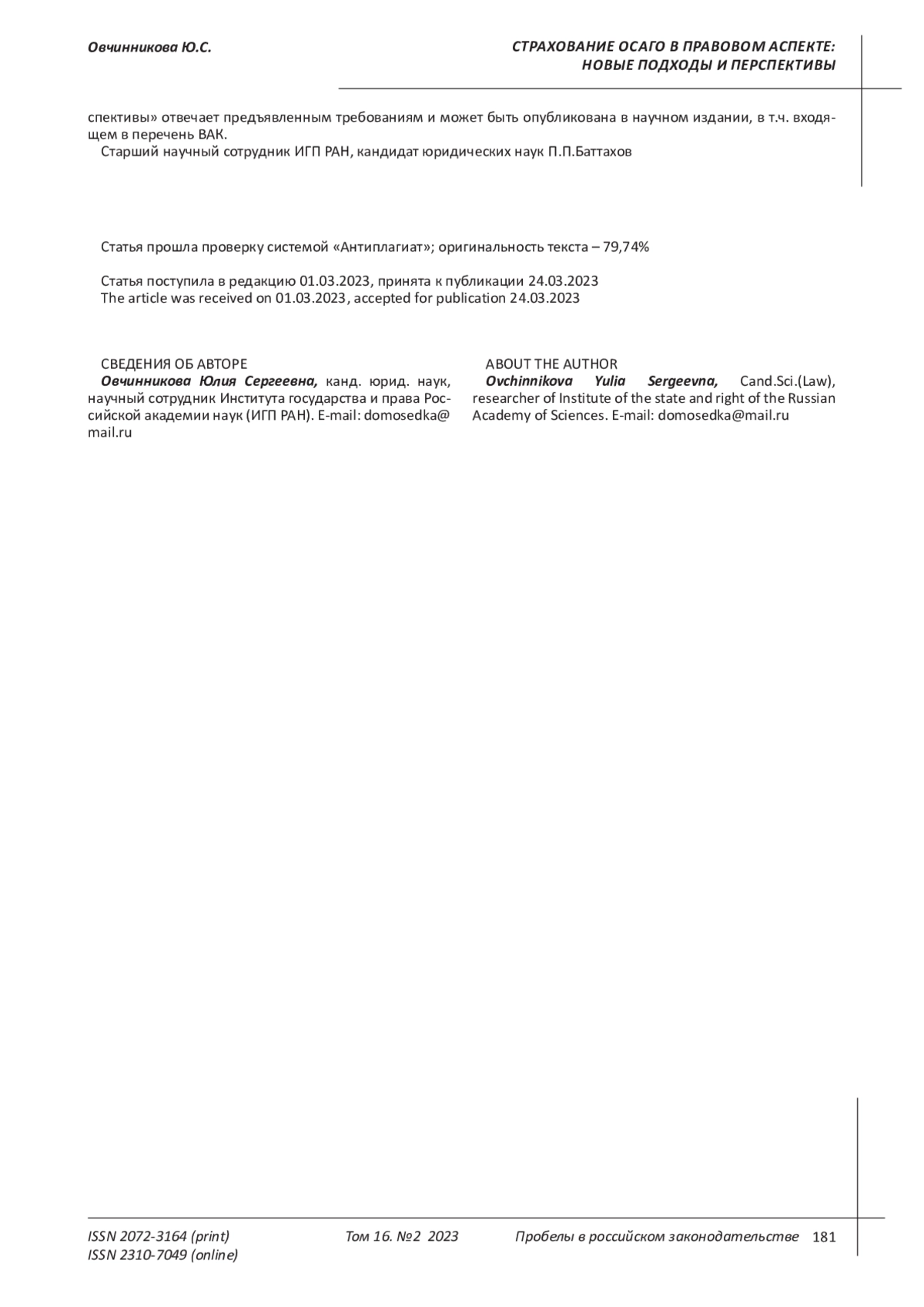 3. Бакланова Л.Д. Обязательное страхование автогражданской ответственности в условиях его развития в России. Автореферат диссертации на соискание ученой степени кандидата экономических наук. Москва, 2006. EDN: NNVWWD