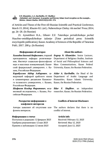 15. Батров Р. Кем был Риза Фахретдин - ваххабитом или коранитом? [Электронный ресурс]. - Режим доступа: https: kam.business-gazeta.ru/blog/378114 (дата обращения: 10. 02. 2025).