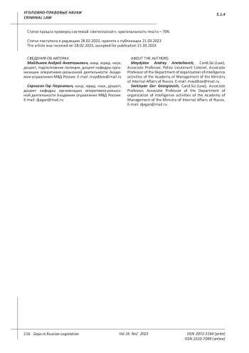 Law of the Russian Federation of March 13, 1992 № 2506-1 (as amended on July 2, 1992) “On operational-investigative activities in the Russian Federation” // Vedomosti SND RF and RF Armed Forces. 1992. № 17. Art. 892. (lost force).