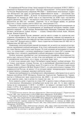 16. Привлекательность российских вузов среди иностранных студентов в условиях глобальной конкуренции на рынках образовательных услуг / В.В. Бондаренко, С.В. Полутин, В.А. Юдина [и др.] // Интеграция образования. 2022. Т. 26. № 1 (106). С. 72-92. https://doi.org/10.15507/1991-9468.106.026.202201.072-092. EDN UBSVCM