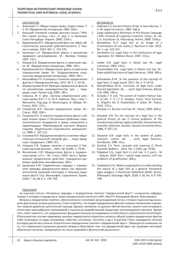 3. Боруленков Ю.П. Юридический факт как образ обстоятельства реальной действительности // Бизнес в законе. 2013. №1. С. 122-125. EDN: PWKDEP