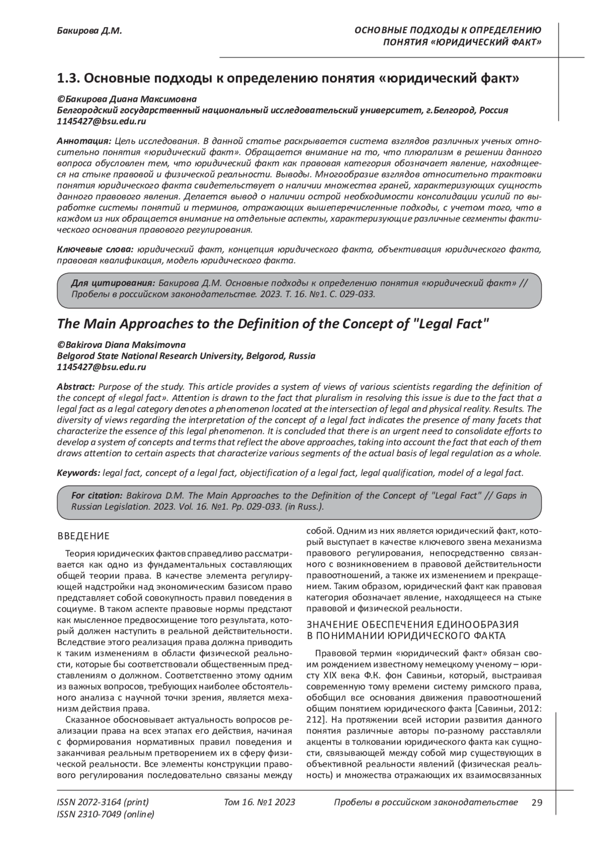 15. Цуканова Е.Ю. Современные подходы к пониманию природы юридического факта как общетеоретической правовой категории // Научные ведомости БелГУ. Сер. Философия. Социология. Право. 2018. Т. 43, № 4. С. 743-749. EDN: YSUPJR
