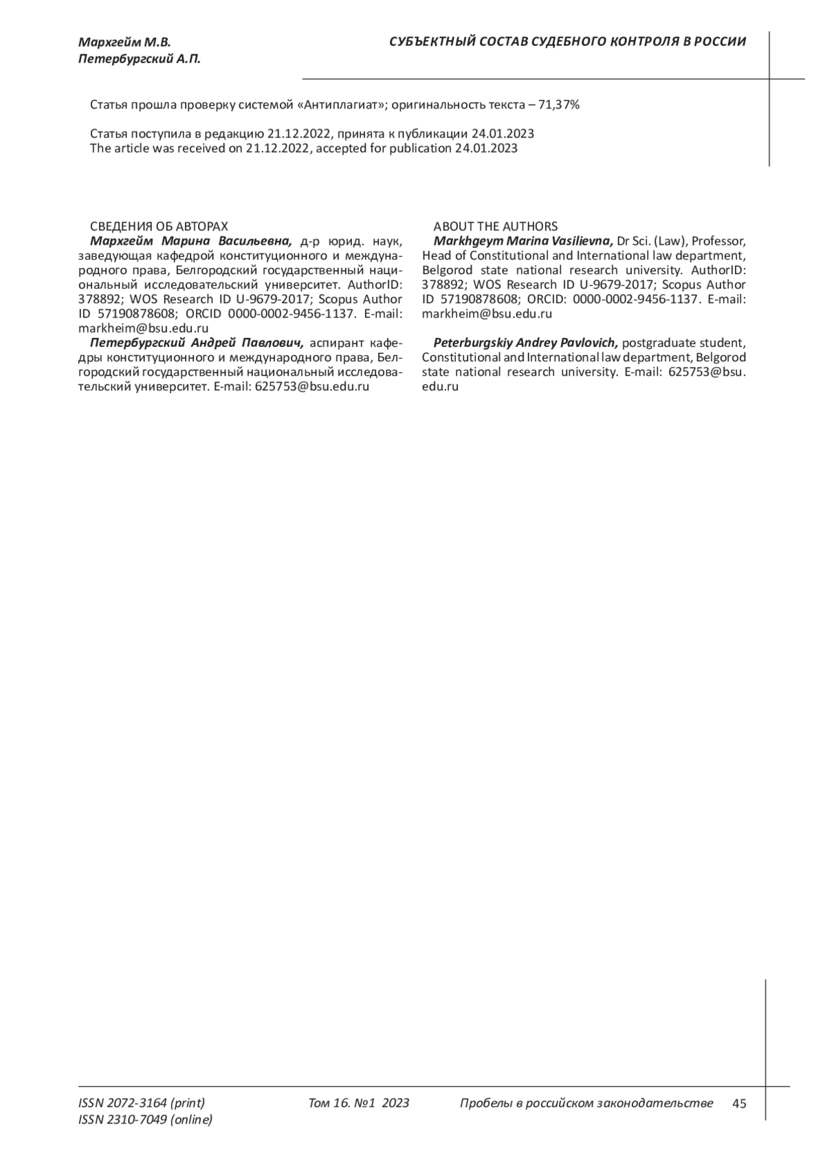 Umarova M.A., (2018), The mechanism of judicial control: a general theoretical study: diss…. cand. jurid. sciences’. Kursk, 204 p. EDN: IISTAE