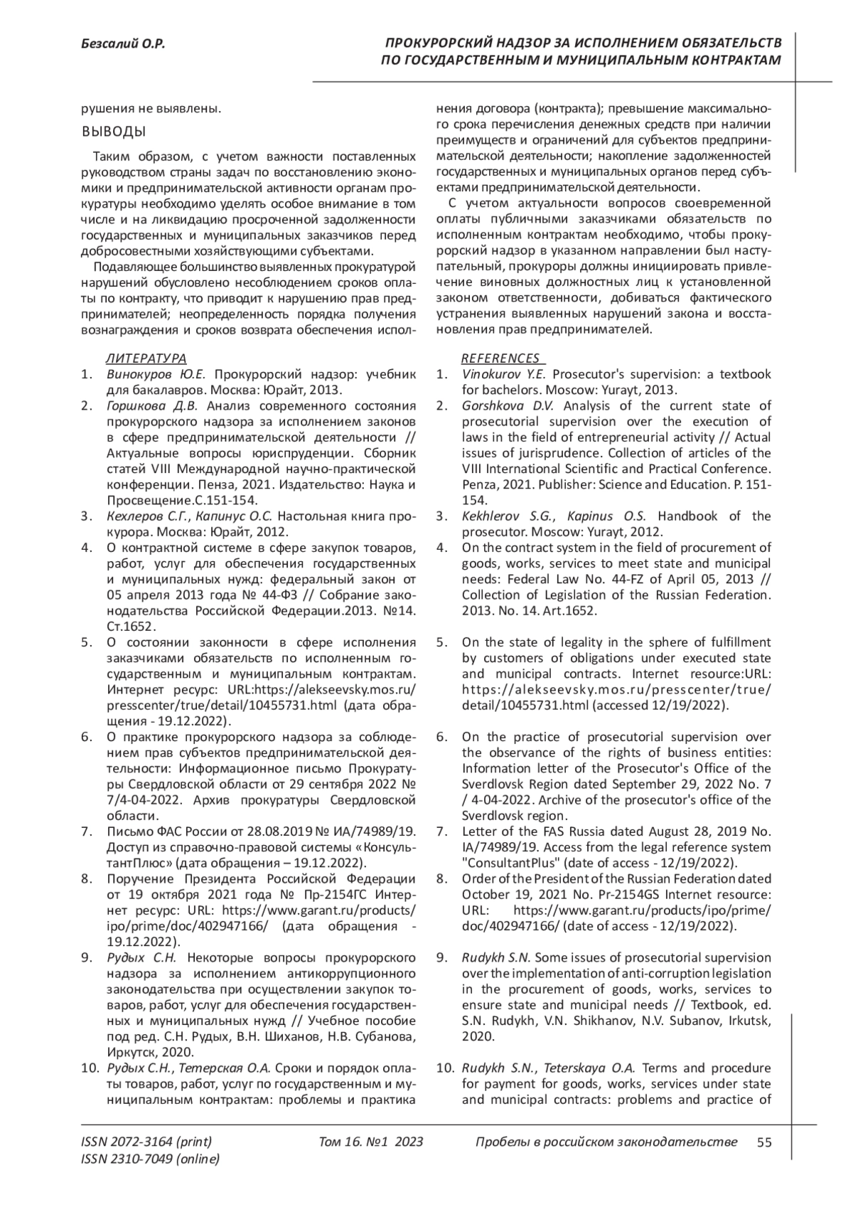 Rudykh S.N. Some issues of prosecutorial supervision over the implementation of anti-corruption legislation in the procurement of goods, works, services to ensure state and municipal needs // Textbook, ed. S.N. Rudykh, V.N. Shikhanov, N.V. Subanov, Irkutsk, 2020. EDN: CZVXIB