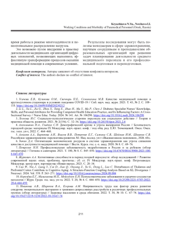2. Li L., Xu L., Jia G., Zhou X., Tang X., Zhao H., Ma Y., Ma P., Chen J. Diabetes Specialist Nurses’ Knowledge, Skills, and Personal Attributes for Providing Competent Health Education Practice, and Its Influencing Factors: A Cross-Sectional Survey // Nurse Educ. Today. 2024. No 141. Art. No 106298. DOI: 10.1016/j.nedt.2024.106298