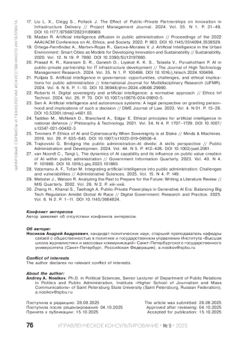 26. Trajkovski G. Bridging the public administration-AI divide: A skills perspective // Public Administration and Developmen. 2024. Vol. 44. N 5. P. 412-426. https://doi.org/10.1002/pad.2061.