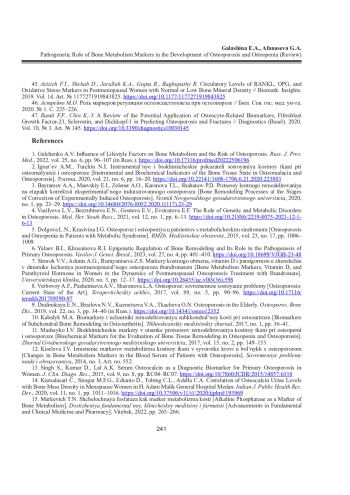 20. Adugani S., Bannimath G., Sastry P. A Review on Biomarkers in Clinical Osteoporosis - Significance of Hydroxyproline // Biomed. Biotechnol. Res. J. 2021. Vol. 5, No 3. Р. 245-251. DOI: 10.4103/bbrj.bbrj_91_21 EDN: LASIHK